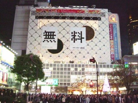 2003年を代表する「goo」検索ワードによる「巨大看板」第2弾は「無料」。ハチ公広場に面した東急東横店壁面