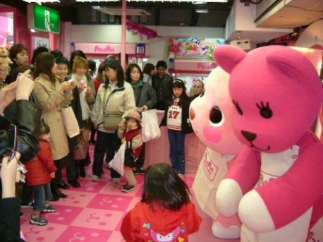 「ポストペット」7周年を記念した「ポストペットハウス」でモモとコモモの撮影イベント。大勢が記念写真をパチリ