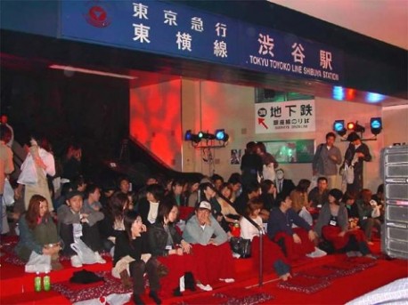 11日深夜午前2時過ぎ、映画「フレディVSジェイソン」のスペシャル試写会が東横線渋谷駅構内で開催された