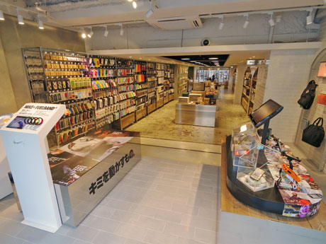 原宿にモバイルアクセのコンセプト店「ハイパーマーケット」。店内は白を基調にし、ステンレスと古材といった異素材を組み合わせた什器を置く