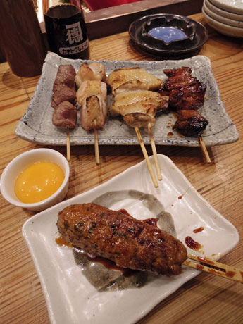 渋谷・松濤に焼き鳥店「ひまわり」。つくね(302円、手前)などさつま雅の焼き鳥