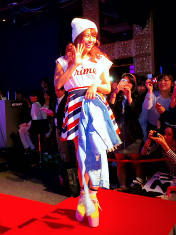 渋谷ギャルの歴代トレンドファッションショー。ニットキャップに「ボリューム巻き」ヘアの「渋原系」(モデル=鈴木あやさん)