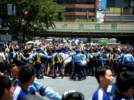 サッカーのワールドカップ(W杯)ブラジル大会で、C組の日本がコートジボワールに1-2で逆転負けした試合の後、渋谷駅前交差点はいつものように騒然とした雰囲気に包まれた。