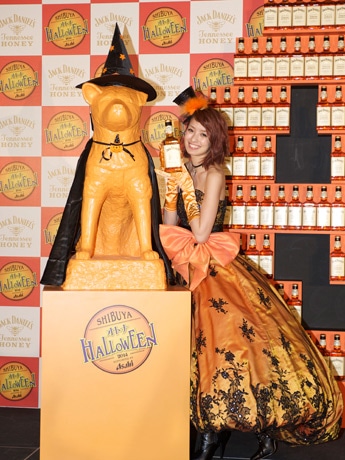 <h2>南明奈さんと仮装したハチ公像レプリカ</h2>