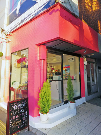 原宿・明治通りに2月14日、カップケーキ専門店「MONARCH CUPCAKE(モナーク カップケーキ)」(渋谷区神宮前3、TEL 03-3470-5226)がオープンした。