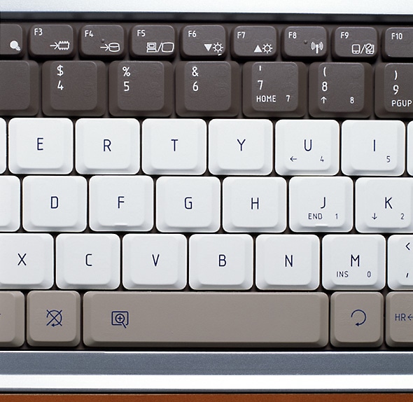 「dynabook REALFLEET MODEL(CX1R)」 英字とアイコンのみで表記され、3色に色分けされたキーボード