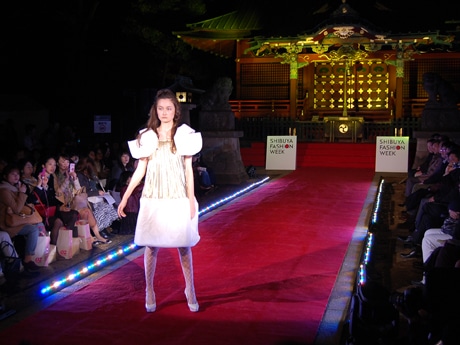 渋谷の氏神である金王八幡宮(渋谷区渋谷3)の境内で3月21日夜、ランウエー・ファッションショー「SHIBUYA RUNWAY」が開かれた。