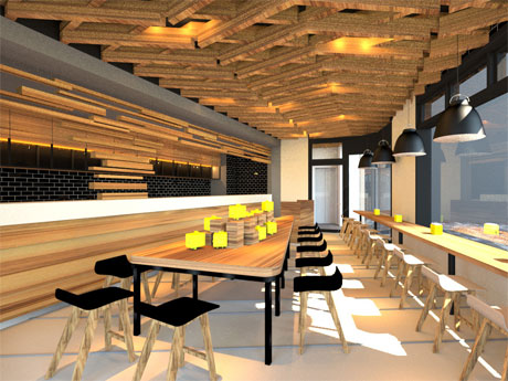 <h2><strong><a href="http://www.shibukei.com/headline/10786/">表参道に台湾発かき氷「アイスモンスター」日本1号店。</a></strong>木を多用する店内イメージ</h2>