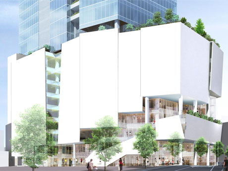 渋谷パルコ建て替え計画。公園通りから望む新築ビルの低層部イメージ