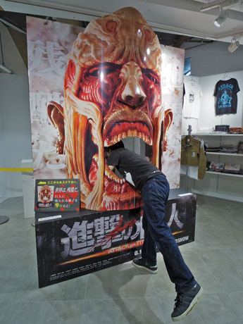 <h2><strong><a href="http://www.shibukei.com/headline/10942/">渋谷ロフトに「進撃の巨人」限定店。</a></strong>食べられているような写真も撮れる超大型巨人のパネル</h2>