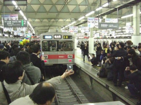 1月31日午前0時19分、渋谷発桜木町行き最終電車をカメラに収めようとファンらがホームに押し寄せた