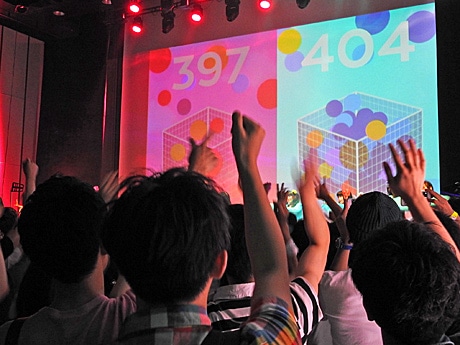 BAPA卒業制作ライブ。3位を獲得したチームBの「EXCITOSS!」。ライブ中、観客は手を振りながら玉入れを競い合う。
