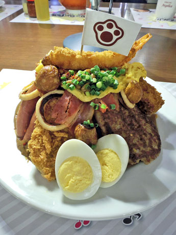 <h2>渋谷パルコにサンリオのバンド企画「SHOW BY ROCK!!」カフェ。特別メニューのウインナーやハンバーグ、納豆、エビフライなどをトッピングするカレー(3,208円)</h2>