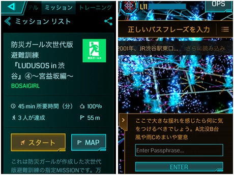 イングレスのミッションおよび災害に関するクイズの画面