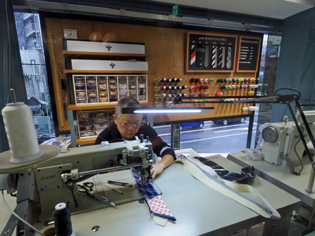 <h2>原宿にネクタイブランド「ジラフ」旗艦店。ミシンなどを置く店内では職人の作業風景も見ることができる</h2>