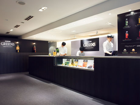 表参道のフランス菓子店「ペルティエ表参道本店」(渋谷区神宮前6)1階に9月10日、飲料「GREENS」のジュースバーが期間限定オープンした。