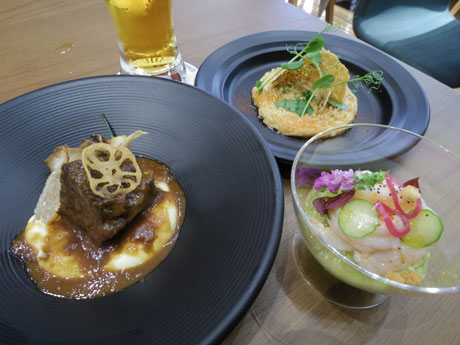 <h2>ガーデンプレイスで「恵比寿麦酒祭り」。ジョエル・ロブション朝比奈悟料理長による料理(各800円)</h2>