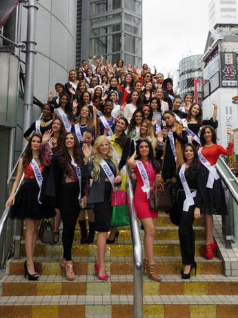 「2015年ミス・インターナショナル世界大会」に出場する各国代表約75人が10月23日、「渋谷の街」の見学ツアーを行った。