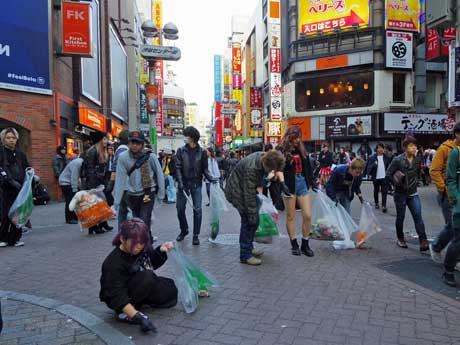 <h2>ハロウィーン後の渋谷でゴミ拾い。バスケ通りのゴミを拾う若者たち</h2>