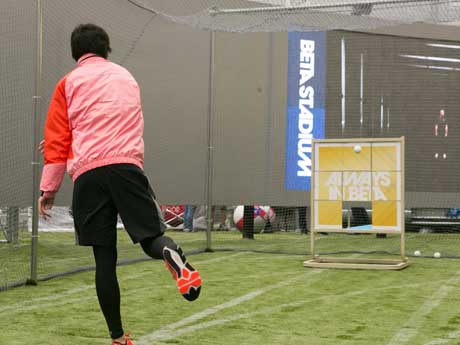 明治通り入り沿いの原宿通り入り口に11月2日、アスレチック体験施設「NB BETA STADIUM(ニューバランス ベータ スタジアム)」(渋谷区神宮前4)が期間限定オープンした。