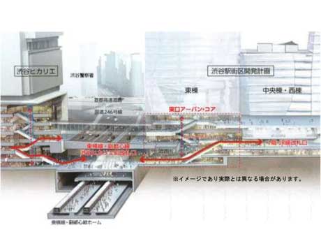 東急線・東京メトロ線とJR線との主要乗り換え経路となっている渋谷駅東口の14番出入り口が2017年夏、乗り換え導線改良のため移設される。