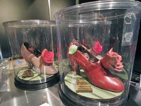 <h2>原宿・表参道で「チョコレートショー」開幕。緑色の土台からバラの装飾まで全て食べられるハイヒール型のチョコレート(6,480円)</h2>