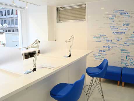 渋谷・井の頭通り沿いに12月4日、米シリコンバレー発スマホ修理・中古買い取りサービスiCracked(アイクラックト)の世界初となる店舗「iCracked 渋谷店」(渋谷区宇田川町、TEL 03-5784-0671)がオープンした。
