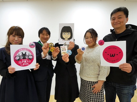 クラウドソーシング事業を手掛けるクラウドワークス(渋谷区恵比寿4)で1月25日、女子高生が考案した「痴漢抑止バッジ」の新デザイン発表会が開かれた。