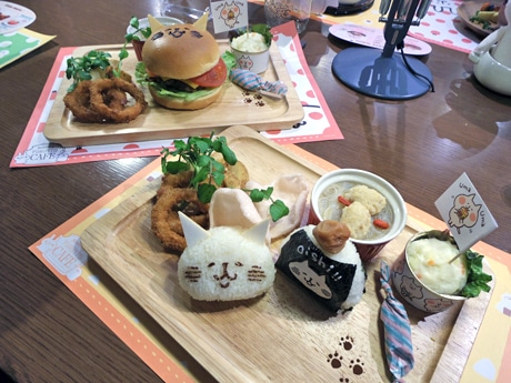 <h2>渋谷パルコに限定「カナヘイのゆるっとカフェ」。プレート(1,814円)は猫の顔をイメージした和牛100%パテを使ったハンバーガーか紀州南高梅と牛しぐれ煮入りのおにぎりを選べる</h2>