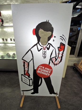 <h2>渡辺祐さん率いる編プロ「ドゥ・ザ・モンキー」、原宿で展示・販売イベント。イラストレーター湯村輝彦さんが描いた猿のイラストを使った顔ハメパネル</h2>