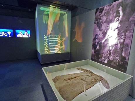 <h2>ラフォーレ原宿で「魔女の秘密展」開幕。拷問時に着せていたシャツやメディアインスタレーションで「火あぶりの刑」を再現した一角</h2>