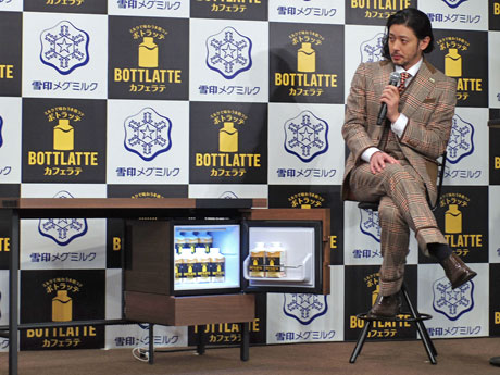 <h2>表参道にコンセプトカフェ「ながラッテカフェ」。冷蔵庫が付いたオリジナルの作業用デスクが気に入った様子だったオダギリジョーさん</h2>