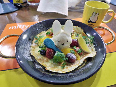<h2>渋谷パルコに限定「ミッフィーカフェ」。イチゴやキウイなどのフルーツをトッピングする「パンネンクーケン」(オランダ風パンケーキ、1,490円〜)</h2>