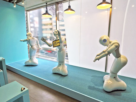表参道駅近くのプロモーションスペース「Zero Base表参道」(港区南青山5)に3月24日、「Pepperだらけの携帯ショップ」が期間限定オープンした。