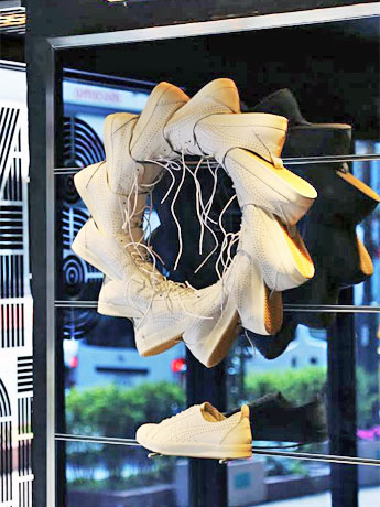 渋谷・公園通りの「オニツカタイガー渋谷」(渋谷区神南1、TEL 03-3464-9040)に現在、英デザイン集団「TOMATO」のジョン・ワーウィッカーさんの作品が展示されている。