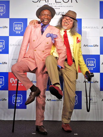 <h2>西武渋谷店で「サプール」写真展。(左から)来日したサプールのセブランさんと写真家・茶野邦雄さん</h2>