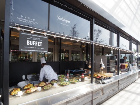 <h2>アトレ恵比寿西館・屋上にビアガーデン。料理などを提供するカウンター</h2>