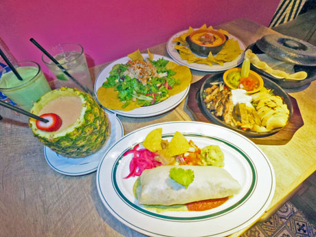 <h2>渋谷・神南にテックスメックス料理店「テクスメクスファクトリー」。ブリトー(手前)など提供するメニュー</h2>