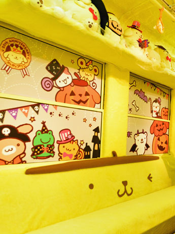 <h2>渋谷に「ポムポムプリン」車両。ポムポムプリン仕様の座席やつり革</h2>