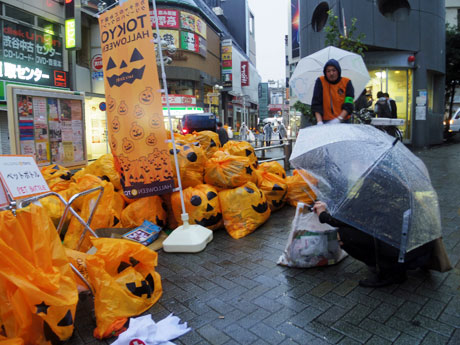 ハロウィーンが明けた渋谷で11月1日朝、ゴミ拾いをする人たちの姿が見られた。