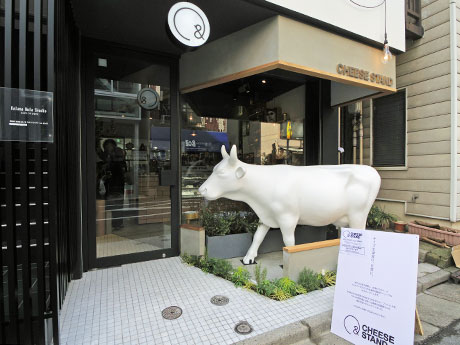 <h2>渋谷・富ヶ谷に「アンド チーズスタンド」。白い牛のオブジェが目印の店舗外観</h2>