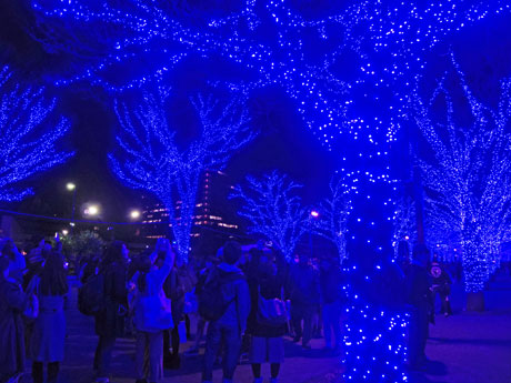 クリスマス当日を迎えた12月25日、渋谷・公園通りや代々木公園ケヤキ並木で点灯中のイルミネーション「青の洞窟 SHIBUYA」でクリスマス演出が行われている。