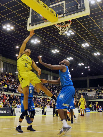 青山学院記念館(渋谷区渋谷4)で12月23日・24日、男子プロバスケ「Bリーグ」のサンロッカーズ渋谷(SR渋谷)と滋賀レイクスターズ(滋賀)の試合が行われた。