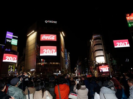 大みそかの渋谷駅前交差点で大規模な交通規制が行われ、大型ビジョンと連動して新年を迎えるカウントダウンが行われた。