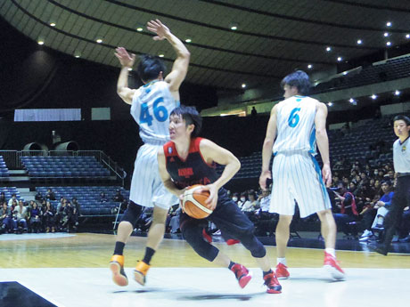 <h2>バスケ「オールジャパン」 アルバルク東京、筑波大下す。ドリブルで切り込む二ノ宮康平選手</h2>