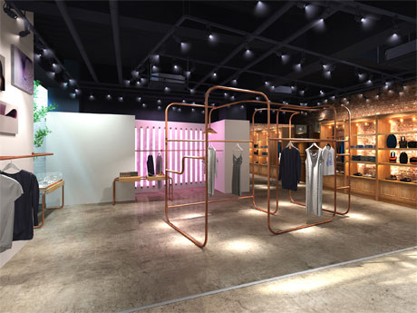 <h2>原宿のNY発ストリートブランド「エックスガール」旗艦店改装。レンガ張りの壁面などでNYの「都会的で洗練されたイメージ」を表現する空間に仕上げる地階フロアのイメージ</h2>