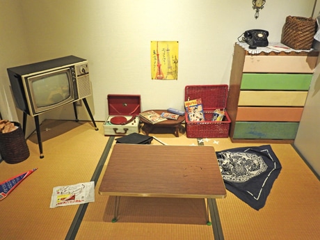 「なつかしき昭和の暮らし」展。昭和30年代の庶民の暮らしぶりがうかがえる居間を再現している。、