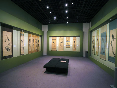 <h2>Bunkamuraザ・ミュージアムで「これぞ暁斎」展。シンボルであるカラスを描いた作品14点が並ぶ一角</h2>