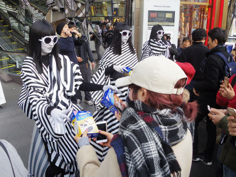 表参道に3月1日夕方、モノトーンの衣装に身を包んだ女性たちが登場した。