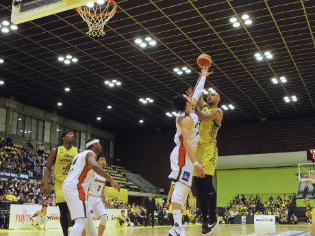 青山学院記念館(渋谷区渋谷4)で4月8日、男子プロバスケ「Bリーグ」のサンロッカーズ渋谷(SR渋谷)と横浜ビー・コルセアーズ(横浜)の試合が行われた。